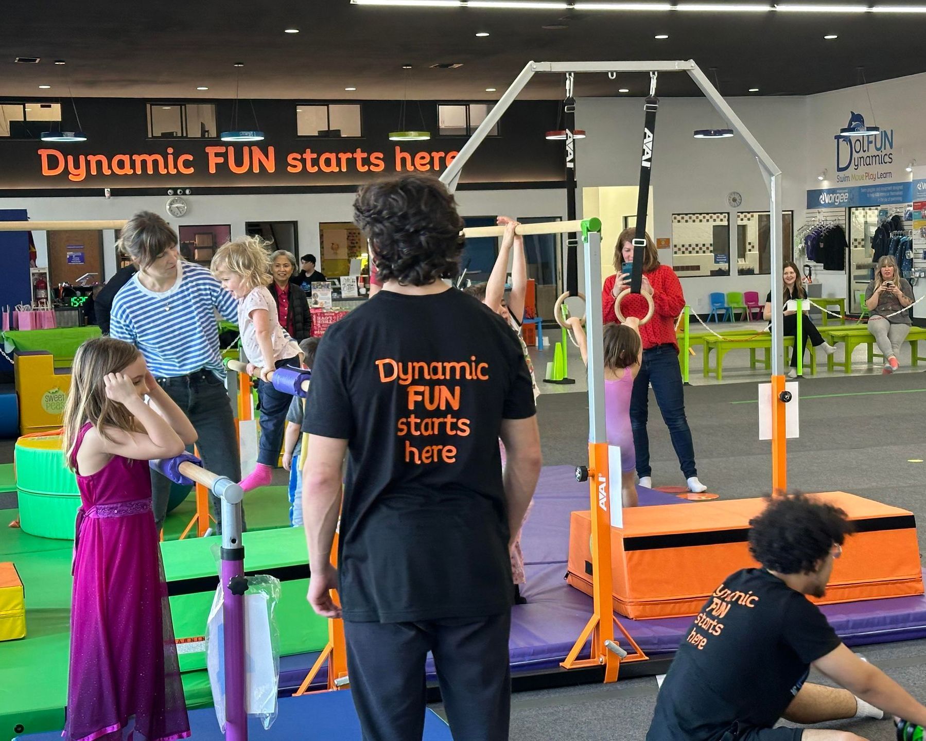 Welcome to DolFUN Dynamics, where we have been making a splash in the world of swim lessons for over 29 years. DolFUN Dynamics is an amazing training and activity center for kids! We offer educational programs and activities for children 2 months – 14 years old. We provide dynamic instruction in swimming, gymnastics, Ninja and more. Our new Enrichment Center will be opening this Summer offering music, art, science, STEAM classes for children of all ages.